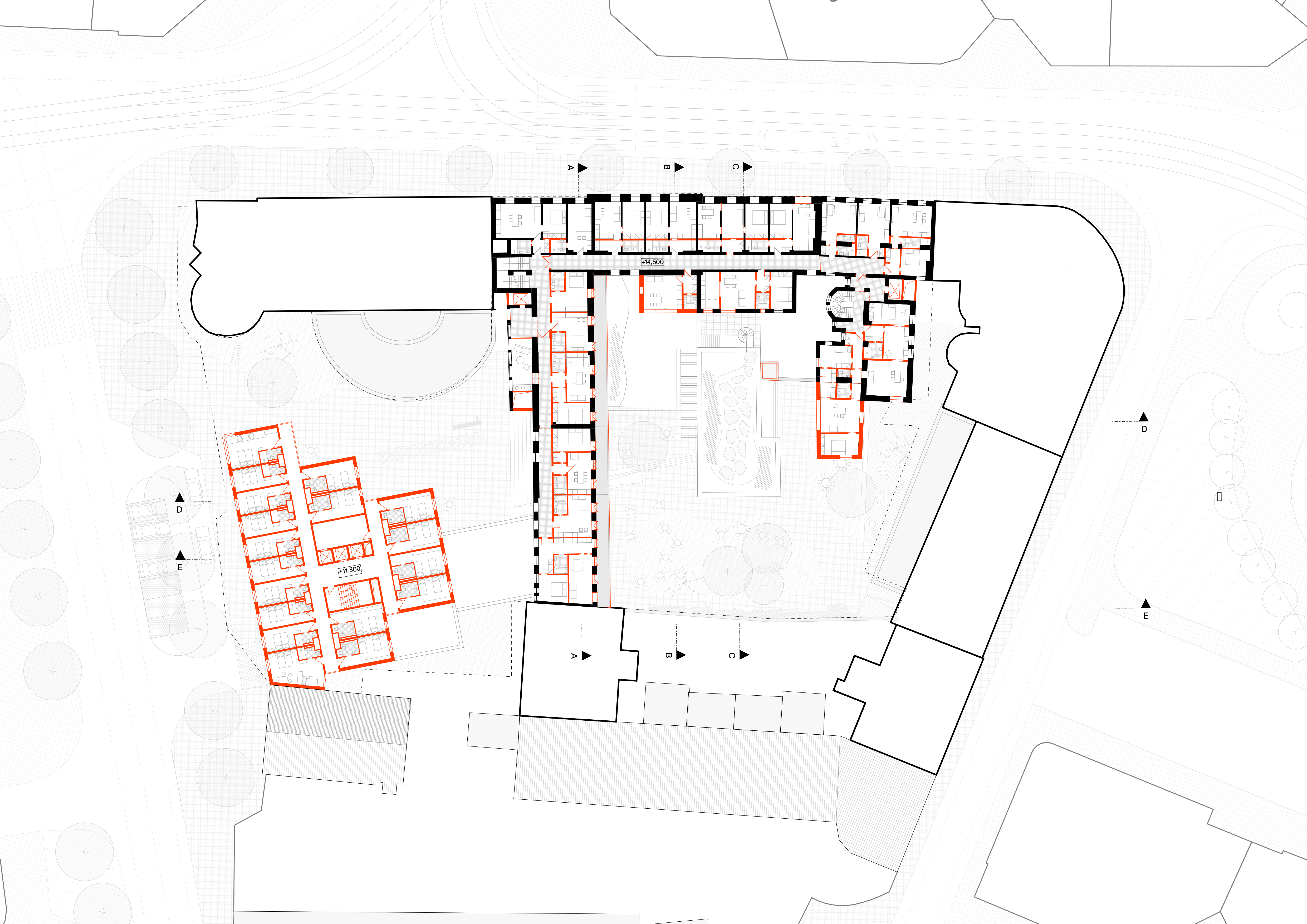 L'objectif commun de ces deux enjeux est de restructurer la cour existante en lui ajoutant de nouvelles fonctions, tout en préservant ses qualités. Pour cela, nous avons mis en place une stratégie fine d'additions et de soustractions, après analyse précise de l'existant.