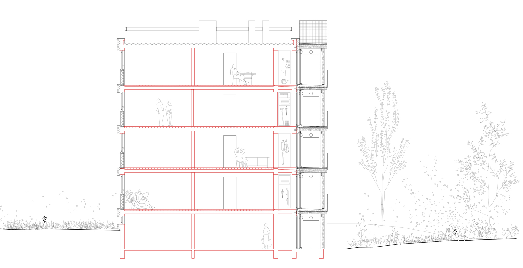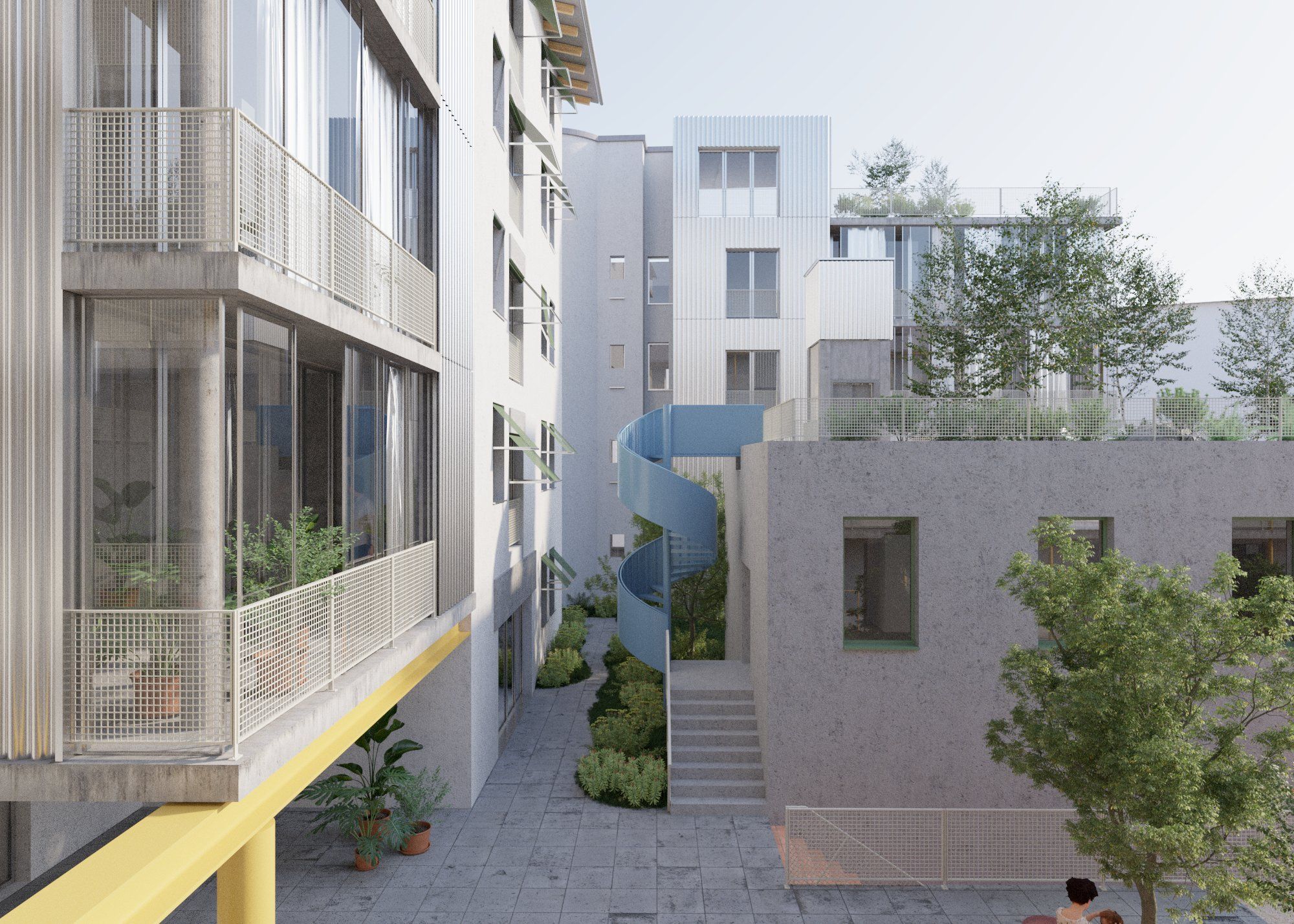 La construction neuve est envisagée dans une logique d’économie de moyens, avec une structure sobre, l’emploi des bons matériaux au bon endroit, la conception d’espaces simples et lisibles, et une anticipation du potentiel de transformation des espaces.